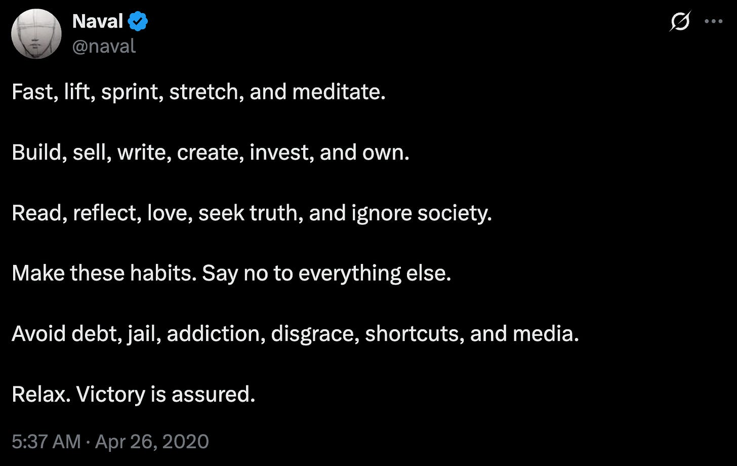 I was listening to a conversation between Naval Ravikant and Eric Jorgenson, and there’s one nugget in there that keeps resonating with me—even when I’ve heard it a few times already on other interviews or tweets from Naval.