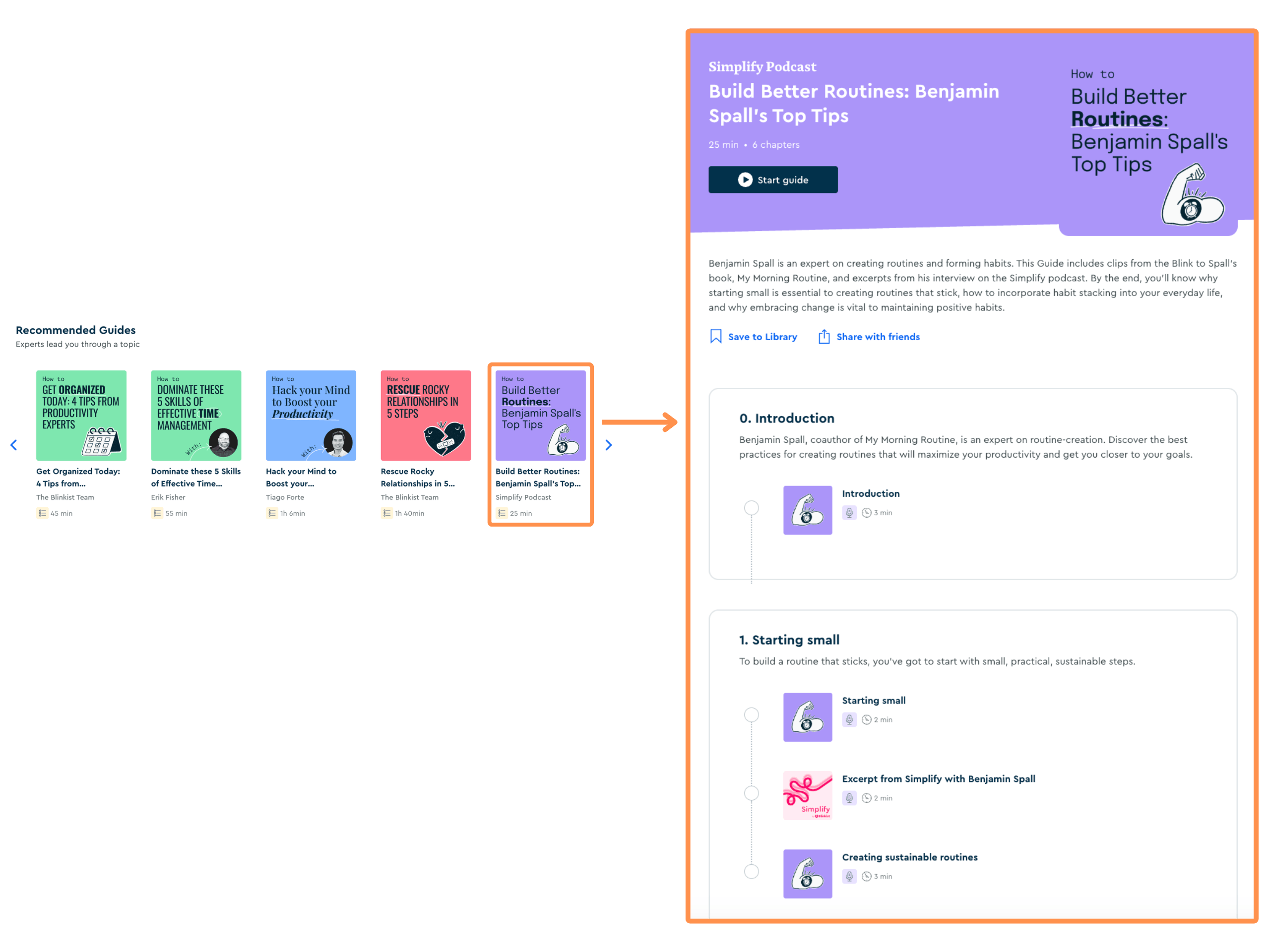Beyond book summaries, Blinkist offers 6 features: