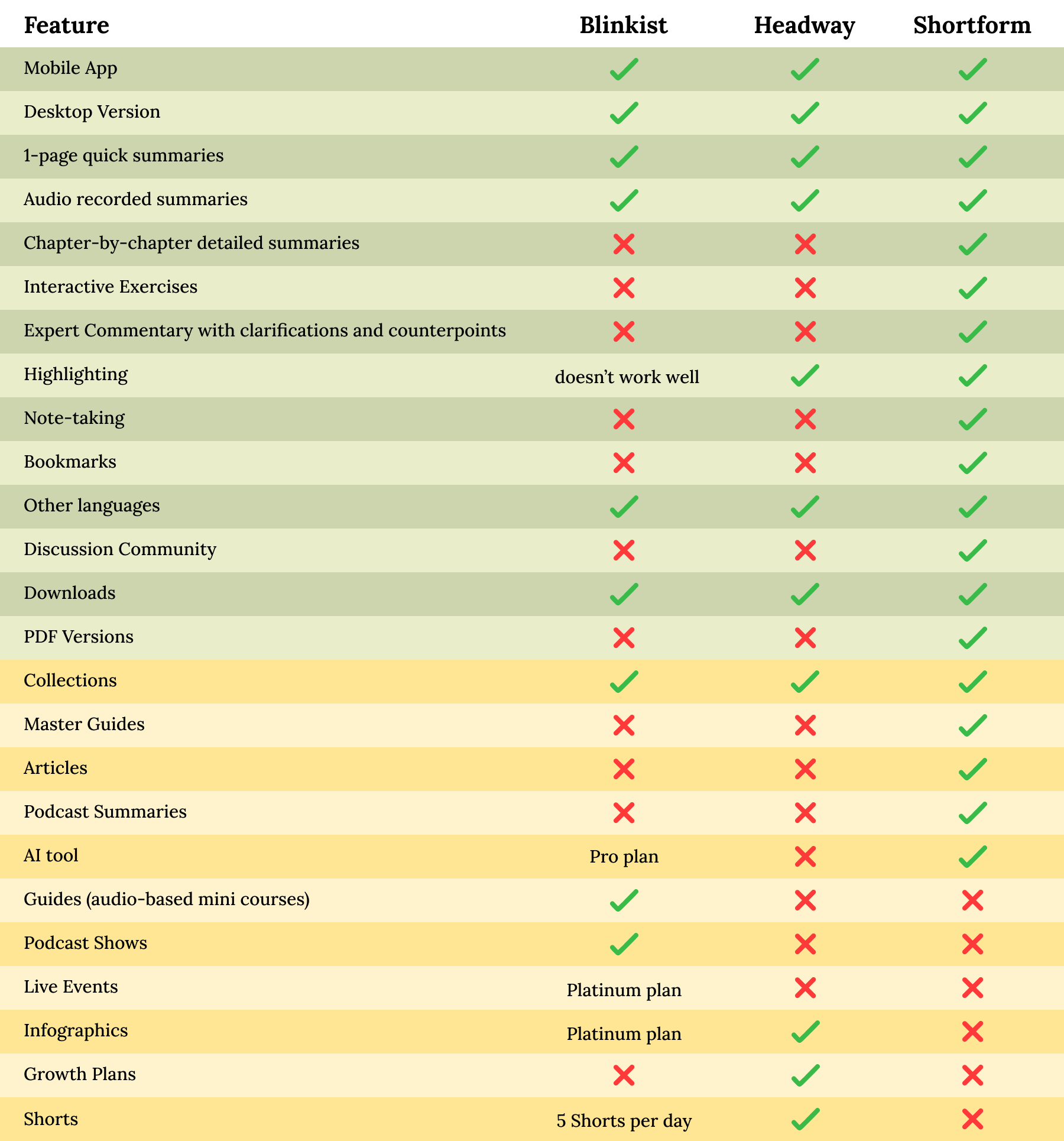 (Note: The green color represents the features of the book summaries, whereas the yellow represents the services beyond the book summaries…)