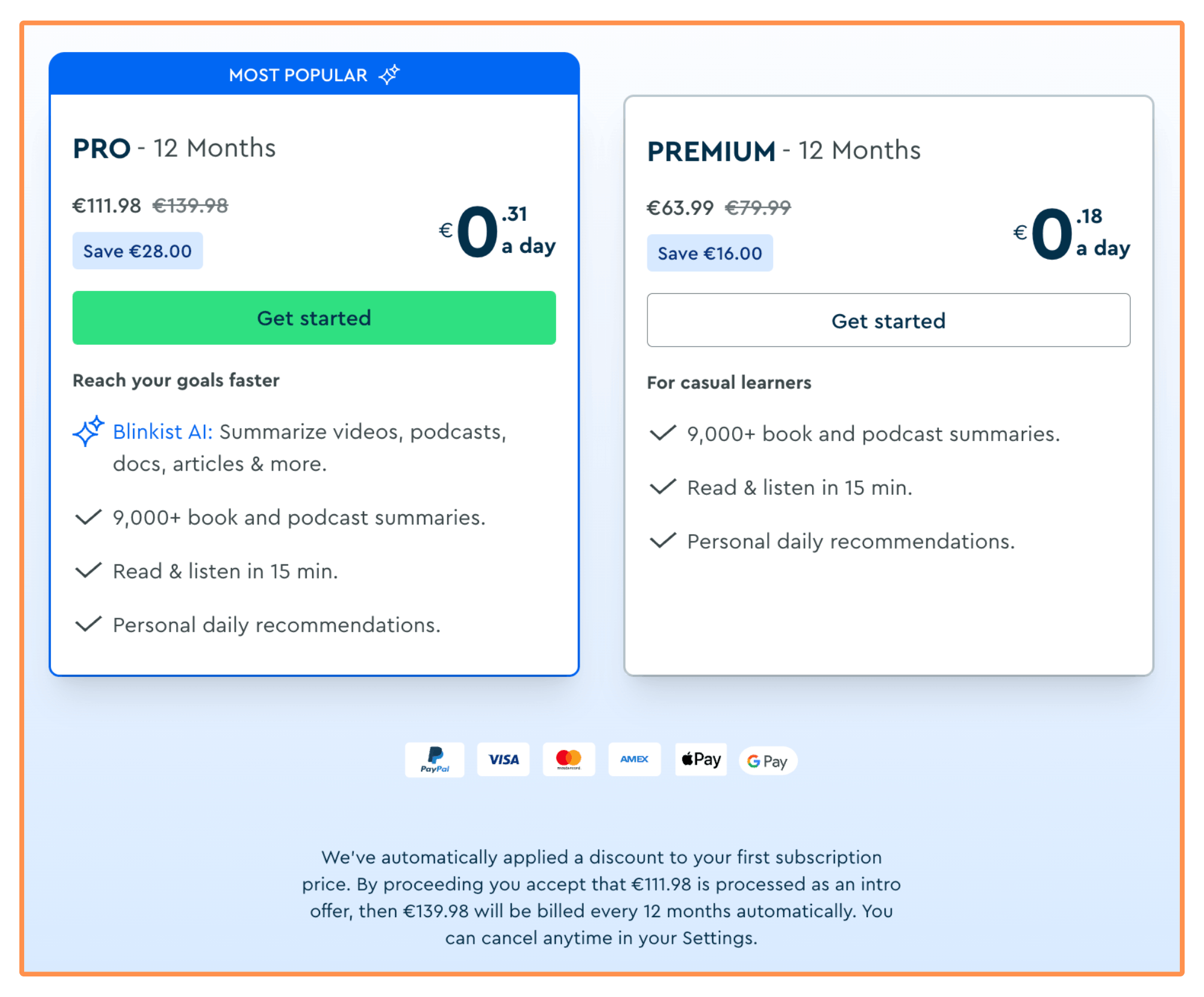 Blinkist offers three Subscription Plans: