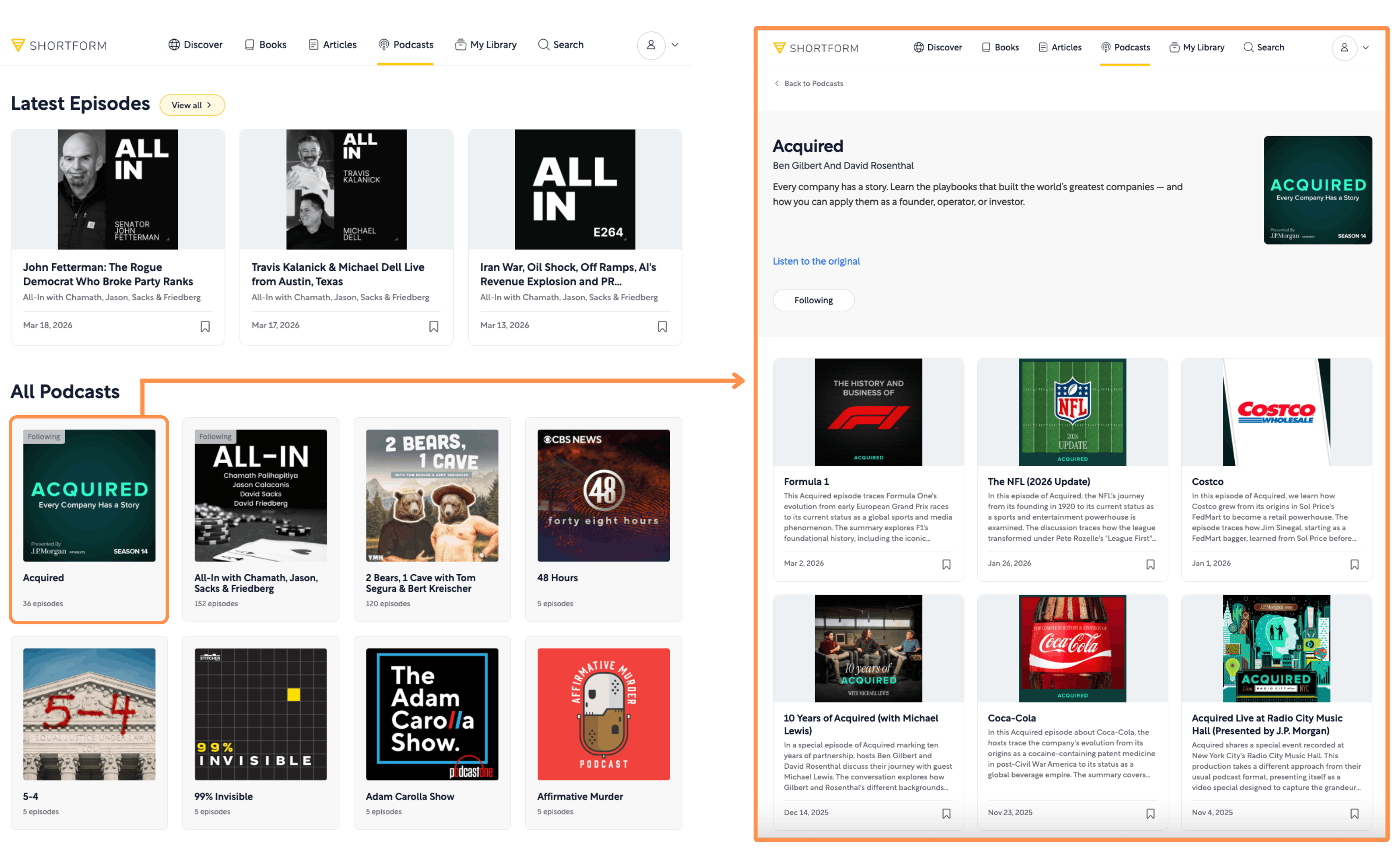 Podcast Summaries → They offer summaries on episodes of many different Podcasts.