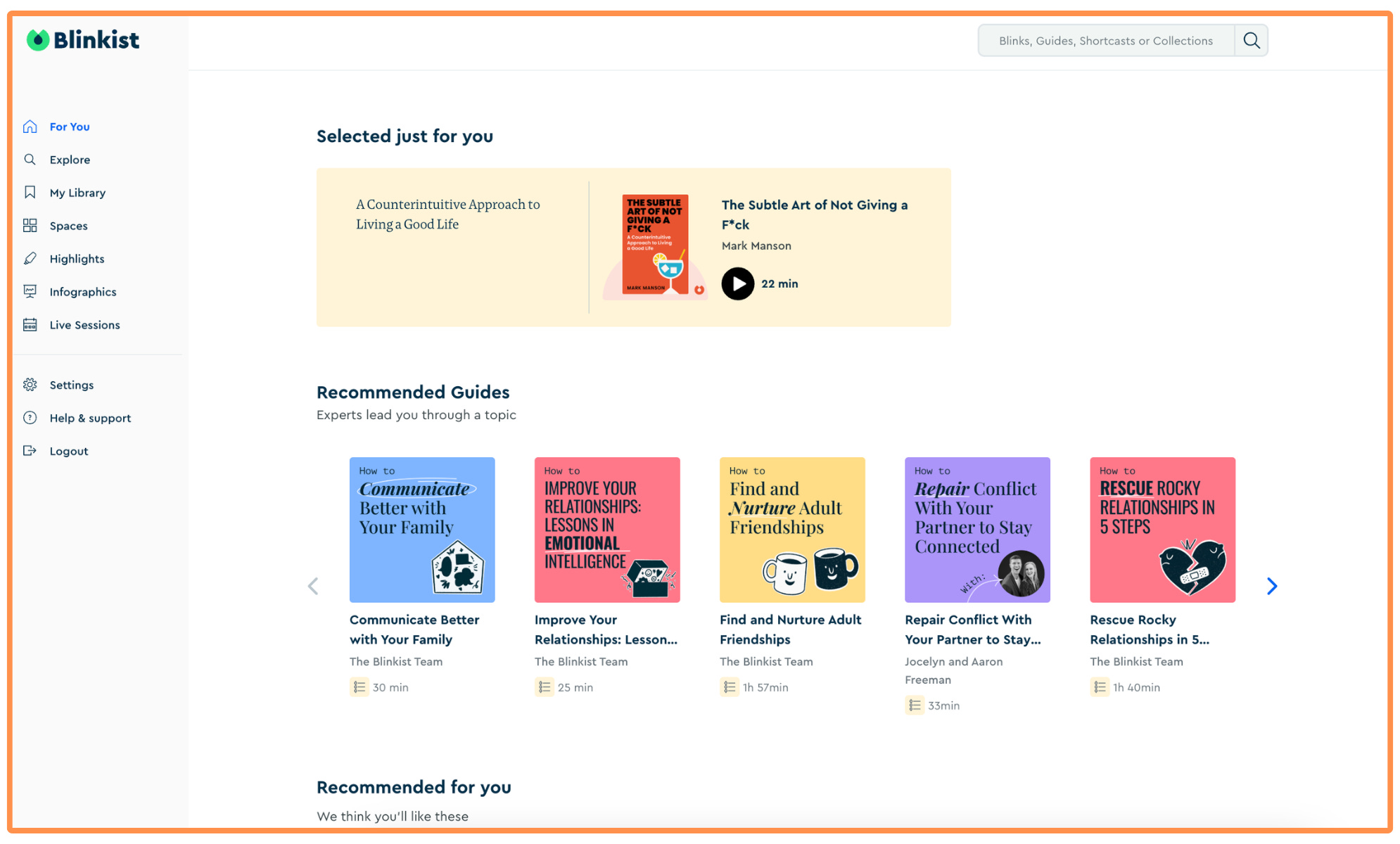 Blinkist’s desktop interface is great, and it’s almost as feature-rich as the mobile app (it’s just missing Blinkist AI and Shorts).