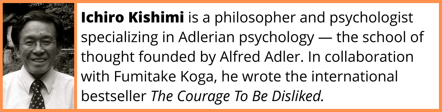 Now the insightful idea from the book The Courage To Be Disliked...🟠 Ichiro Kishimi:
