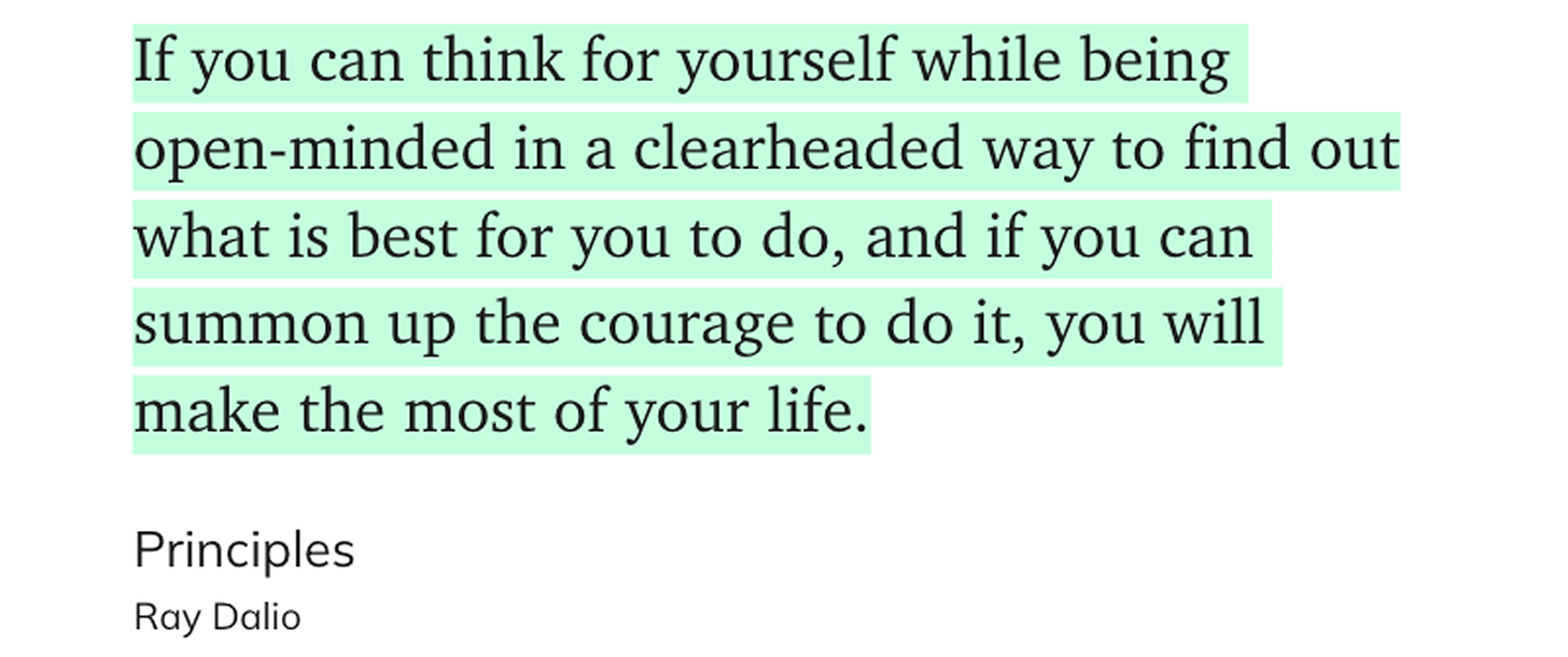 It shows nuggets from articles, blog posts, and essays I’ve read.