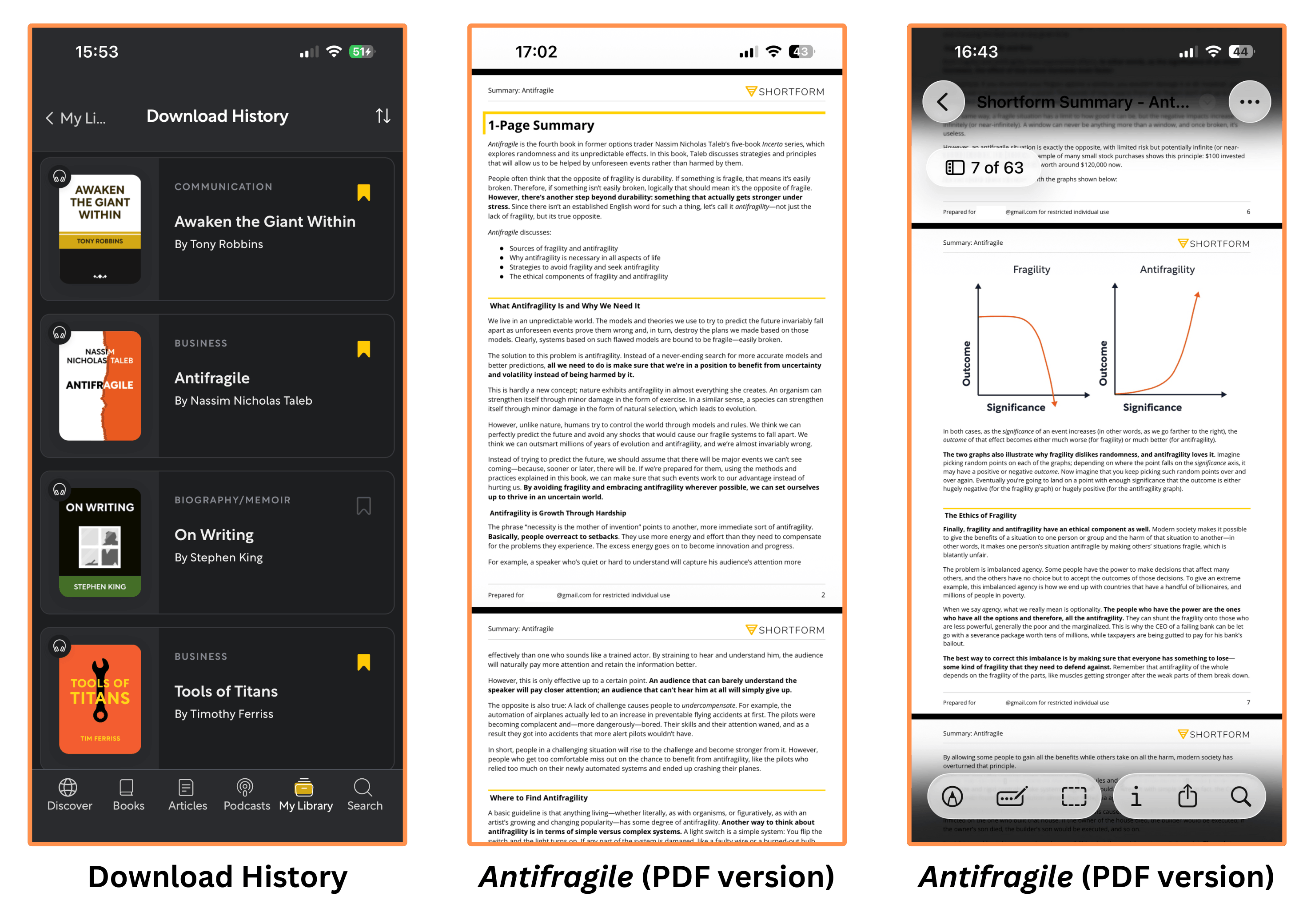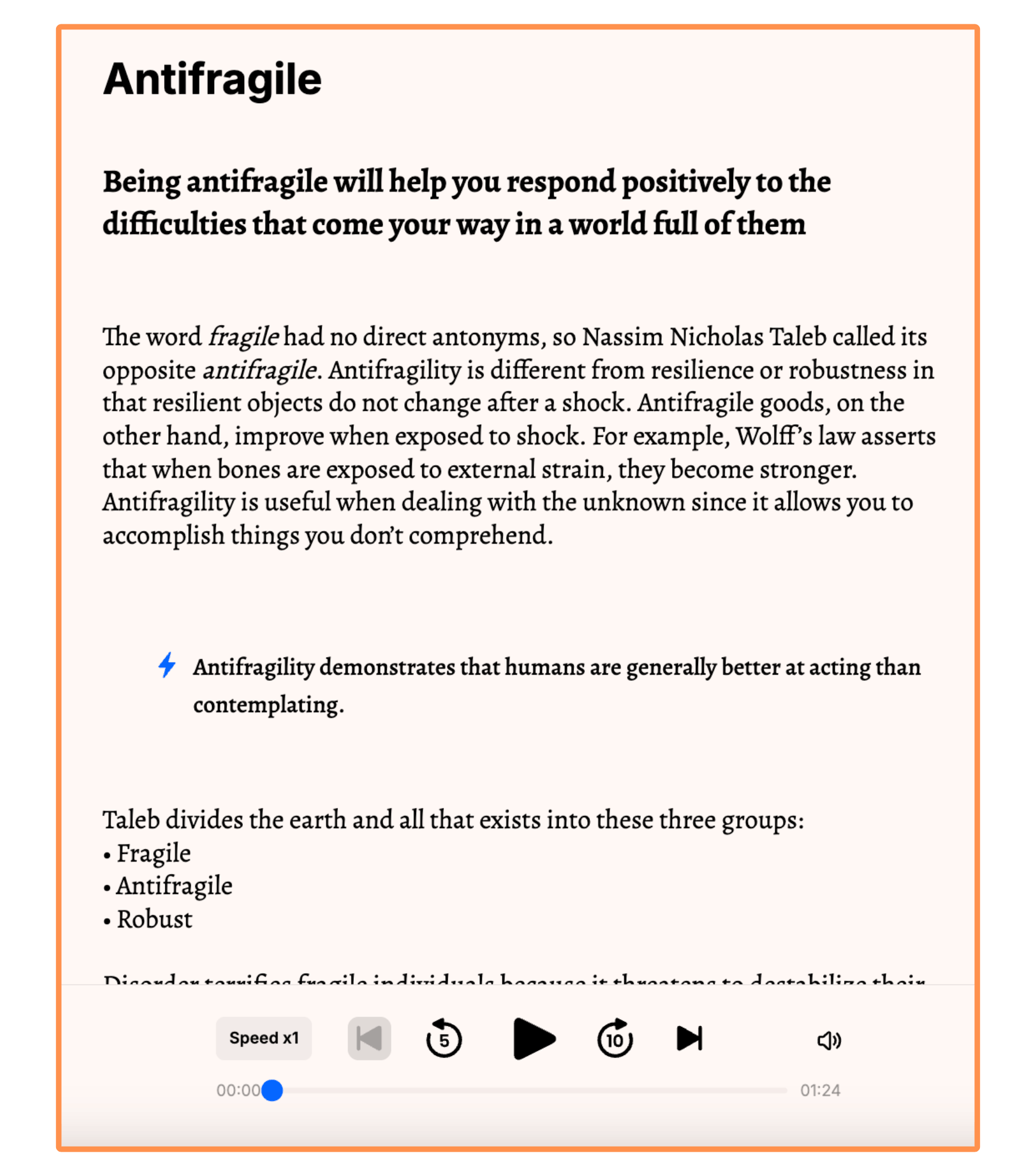 Here’s how Shortform’s summary of Antifragile appears on the mobile app…