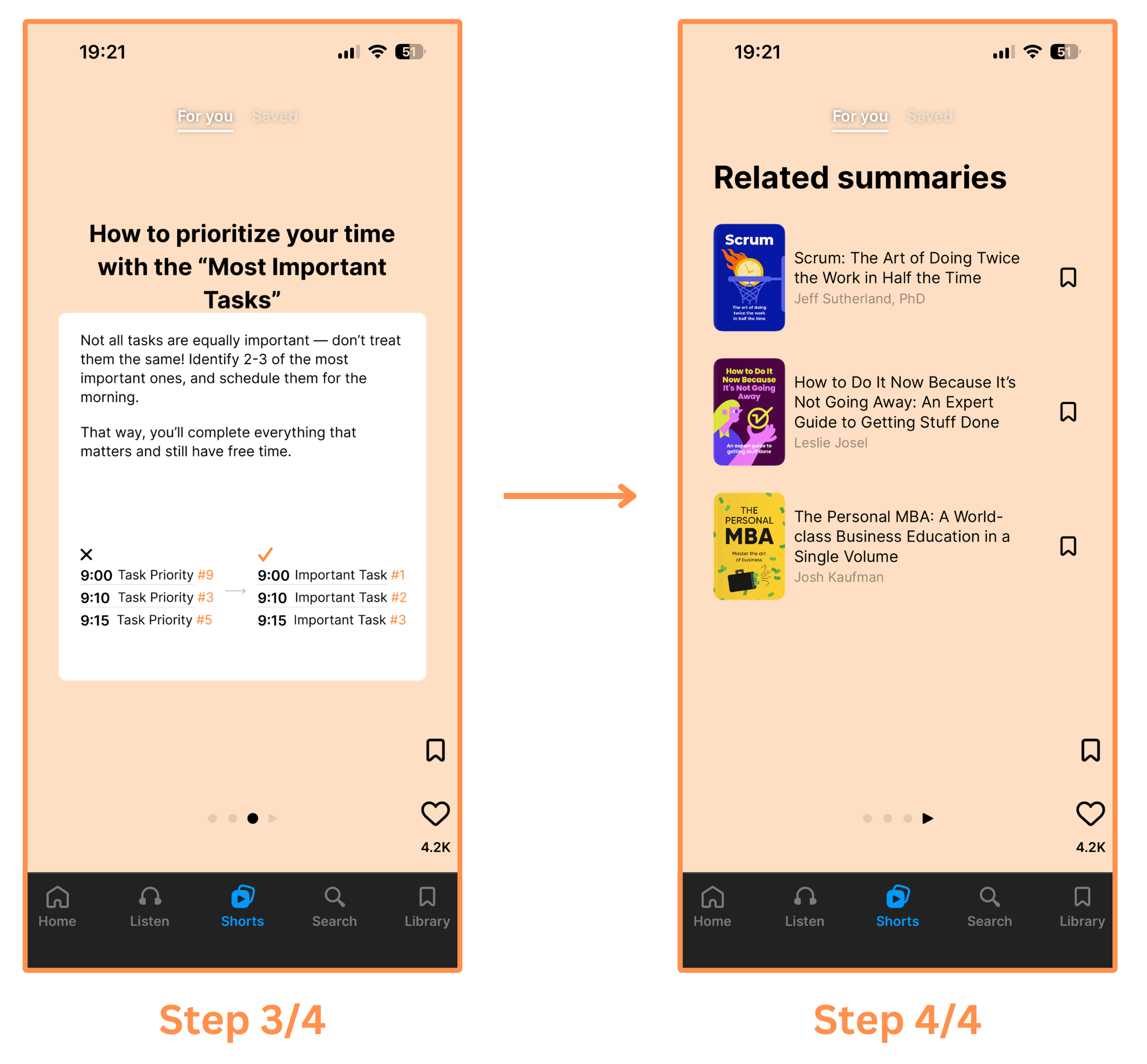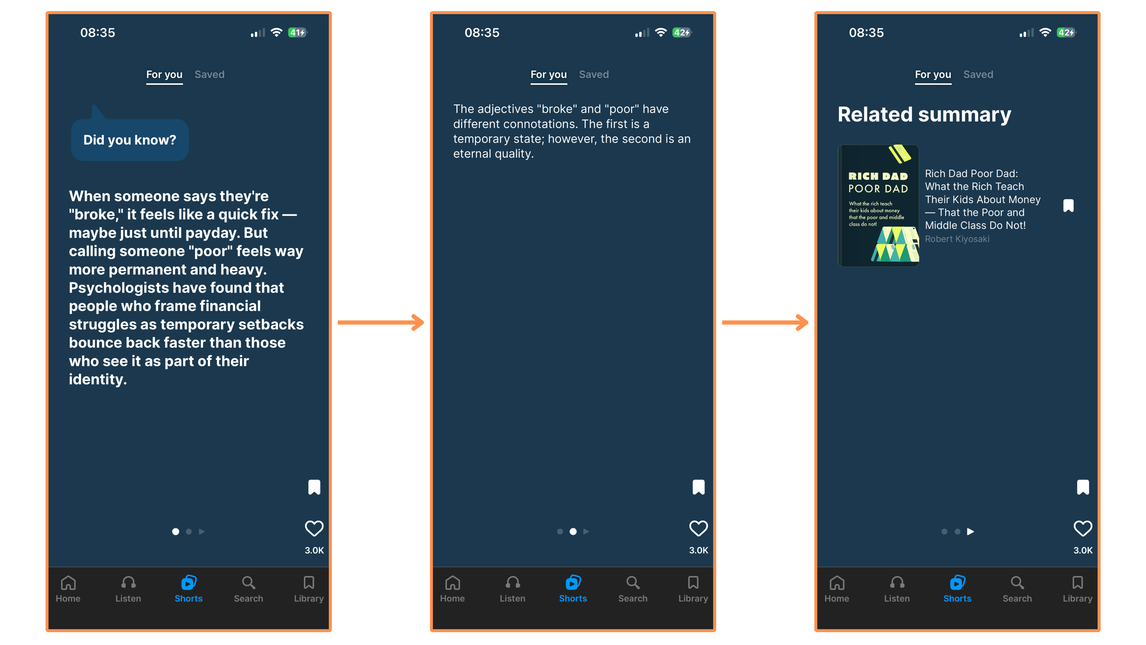Shorts (mobile-only feature) → Like Headway, Blinkist also has Shorts. I noticed 3 types of shorts: