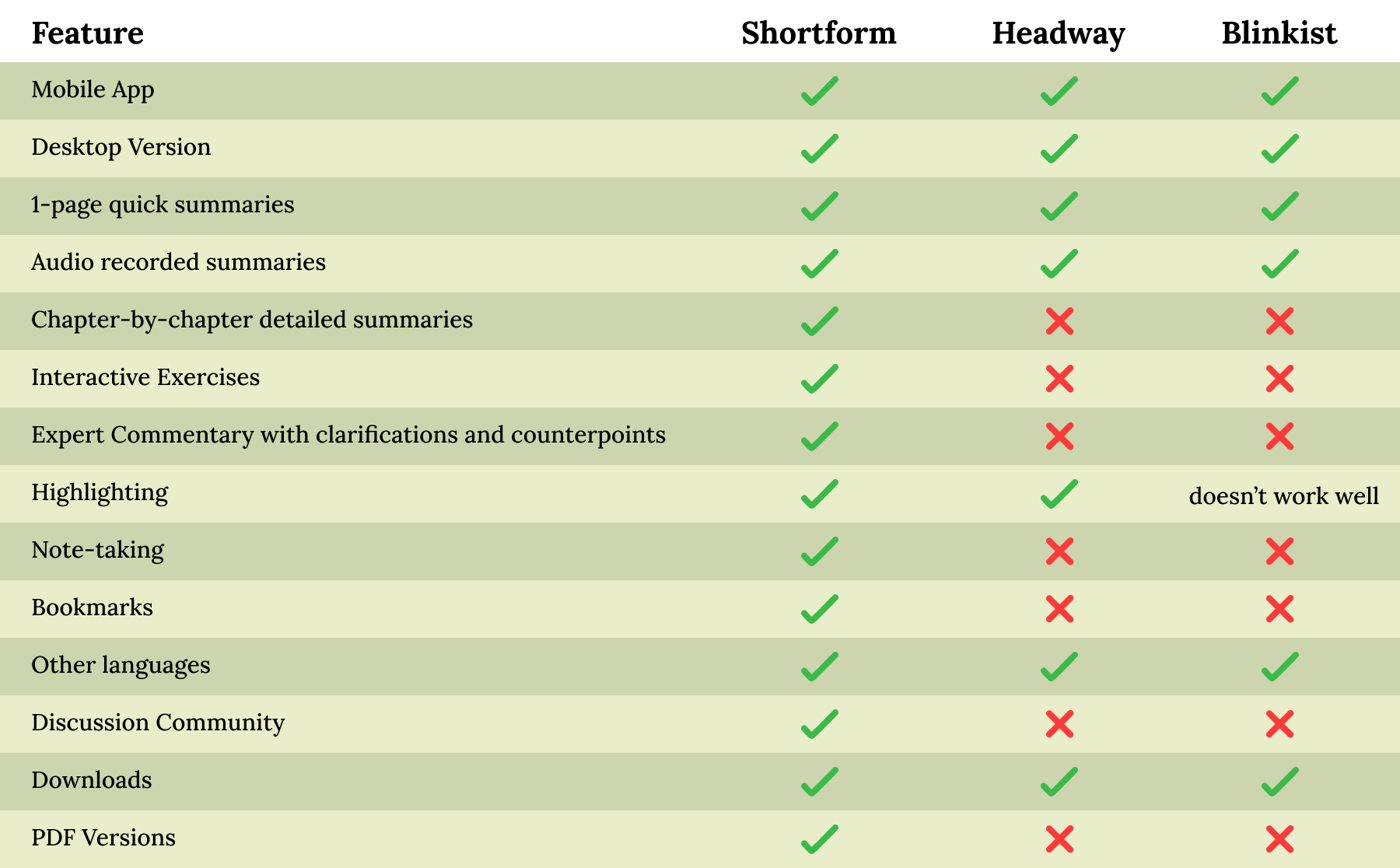 In order to make an accurate and complete comparison, I’ve signed up to Headway and Blinkist (I’m already a subscriber of Shortform) to experience everything for myself, rather than just comparing their marketing brochures.